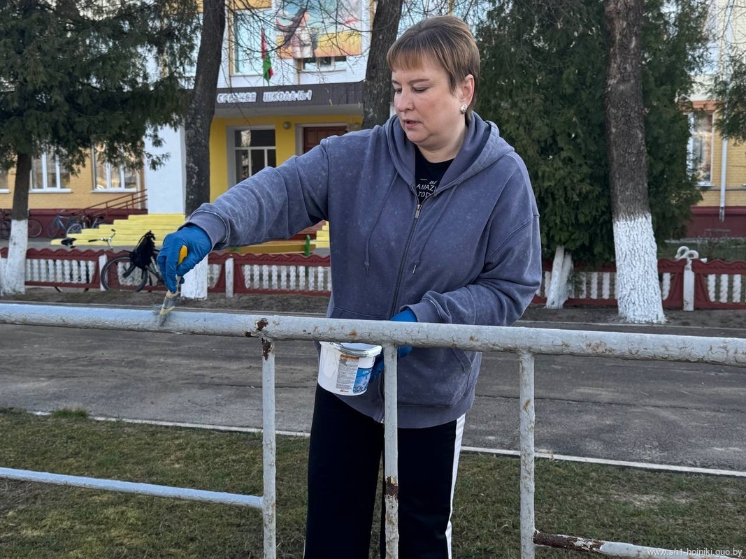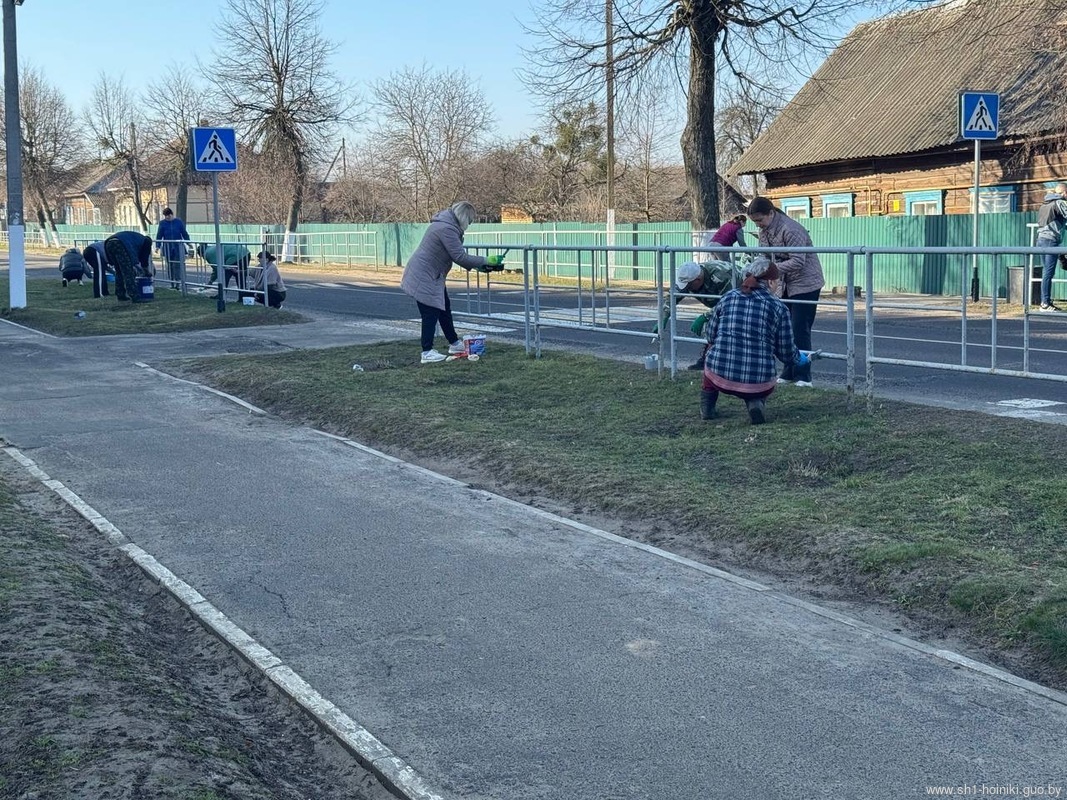 Сегодня работники средней школы №1 города Хойники приняли участие в областном субботнике. Основное направление их работы — покраска забора на улице Советской. Подобные инициативы не только способствуют улучшению внешнего облика города, но и укрепляют командный дух среди сотрудников, а также формируют культуру ответственного отношения к окружающей среде.