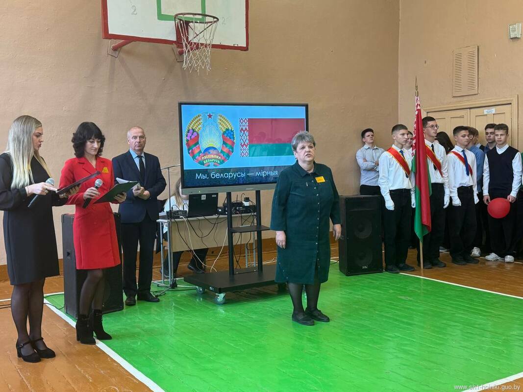 Линейка началась с выноса Государственного Флага Республики Беларусь и исполнения Государственного Гимна.