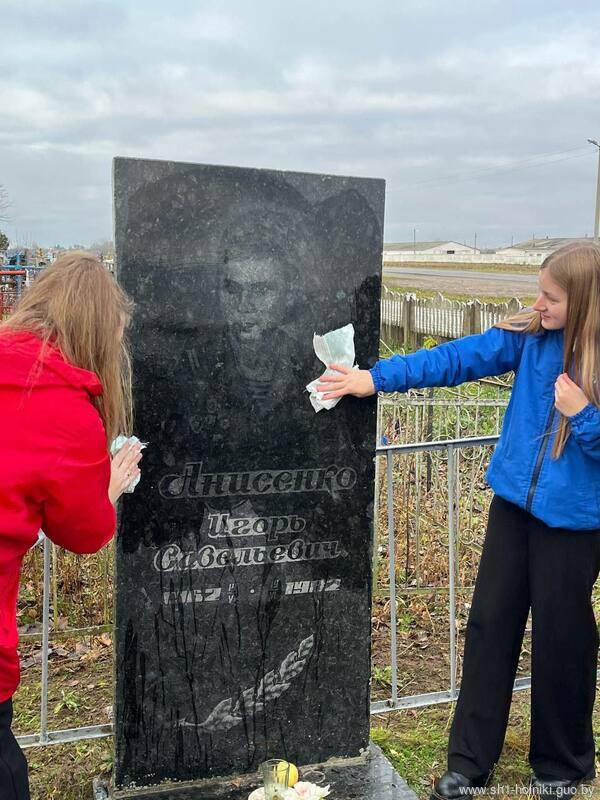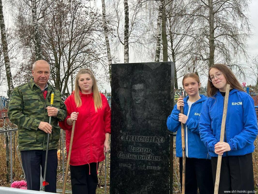 Активисты ГУО «Средняя школа N1 г. Хойники» приняли участие в акции, приуроченной 82-й годовщине освобождения Хойникского района от немецко-фашистских захватчиков и навели порядок на захоронении воина-интернационалиста Анисенко И.С.