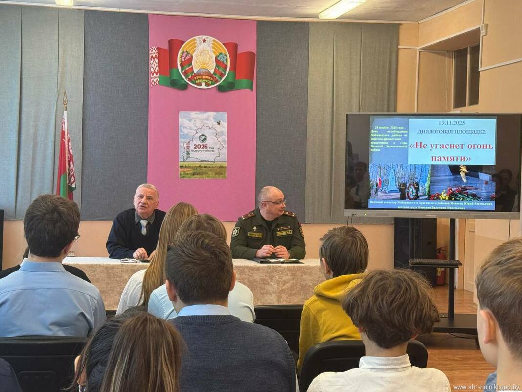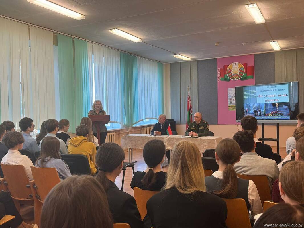В ГУО«Средняя школа №1 города Хойники» прошла значимая диалоговая площадка под названием «Не угаснет огонь памяти», приуроченная к 82-й годовщине освобождения Хойникского района от немецко-фашистских захватчиков в годы Великой Отечественной войны.