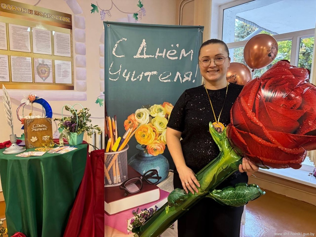 С самого утра в средней школе №1 г. Хойники царила праздничная атмосфера. Педагоги принимали поздравления с наступающим профессиональным праздником – Днём учителя!