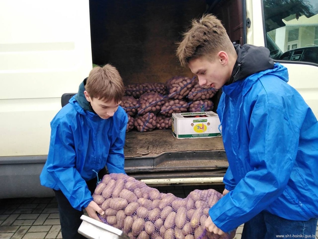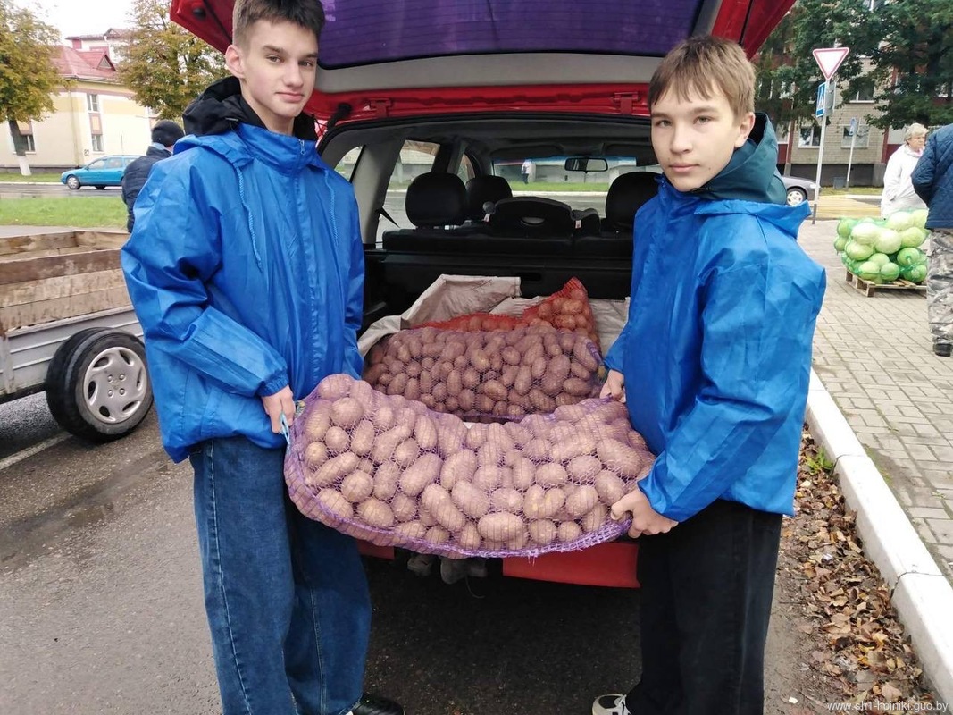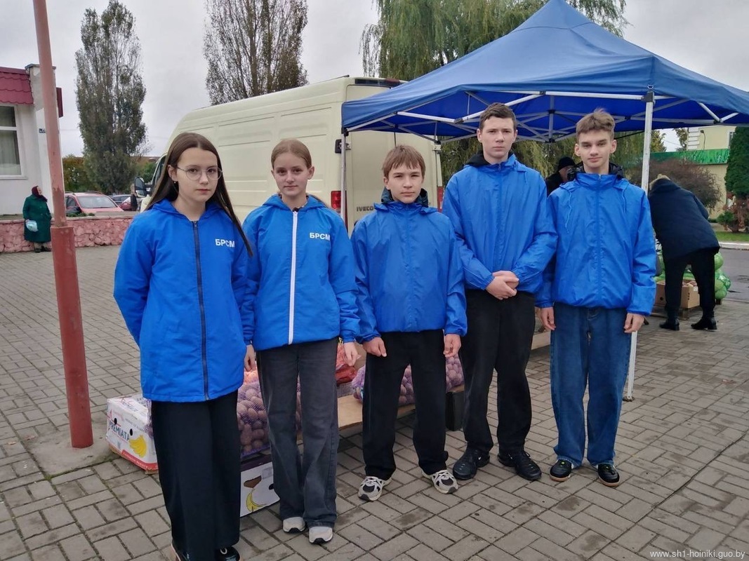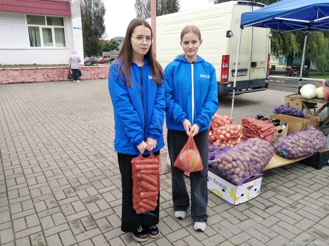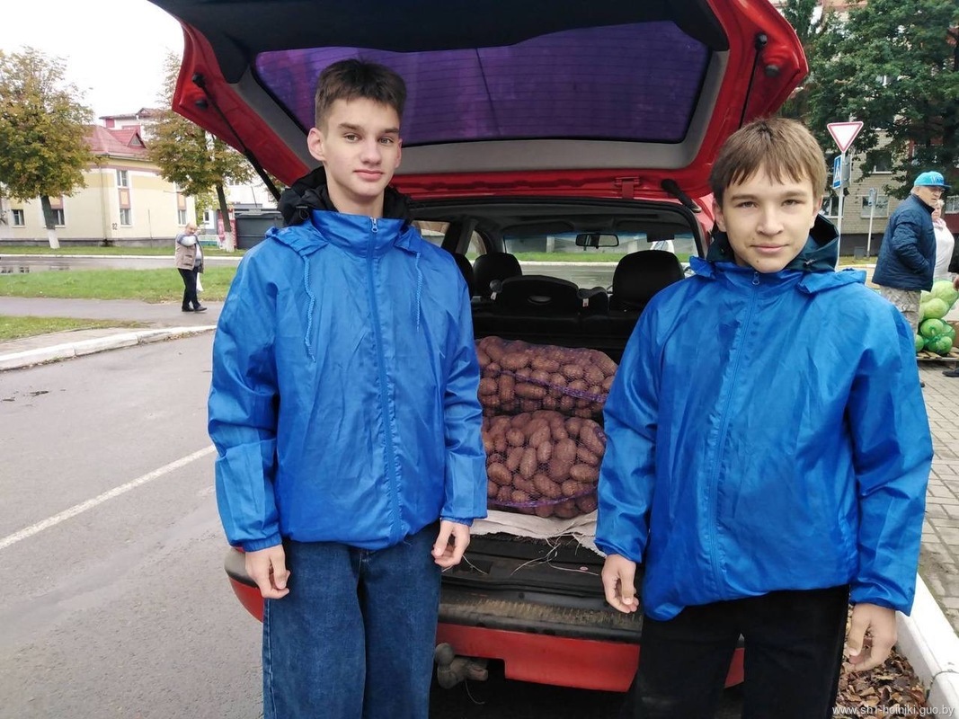 ✅Волонтеры БРСМ «Доброе сердце» ГУО «Средняя школа N1 г.Хойники» оказывают помощь пожилым людям в доставке сельхозпродукции с ярмарки.