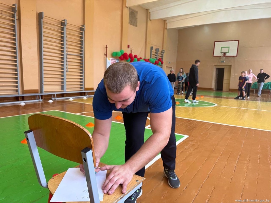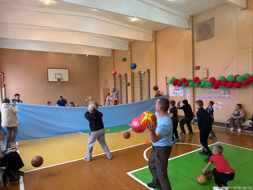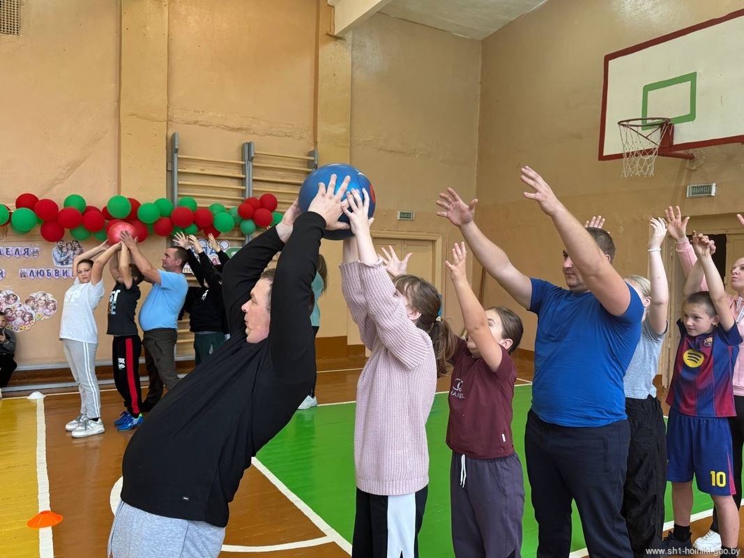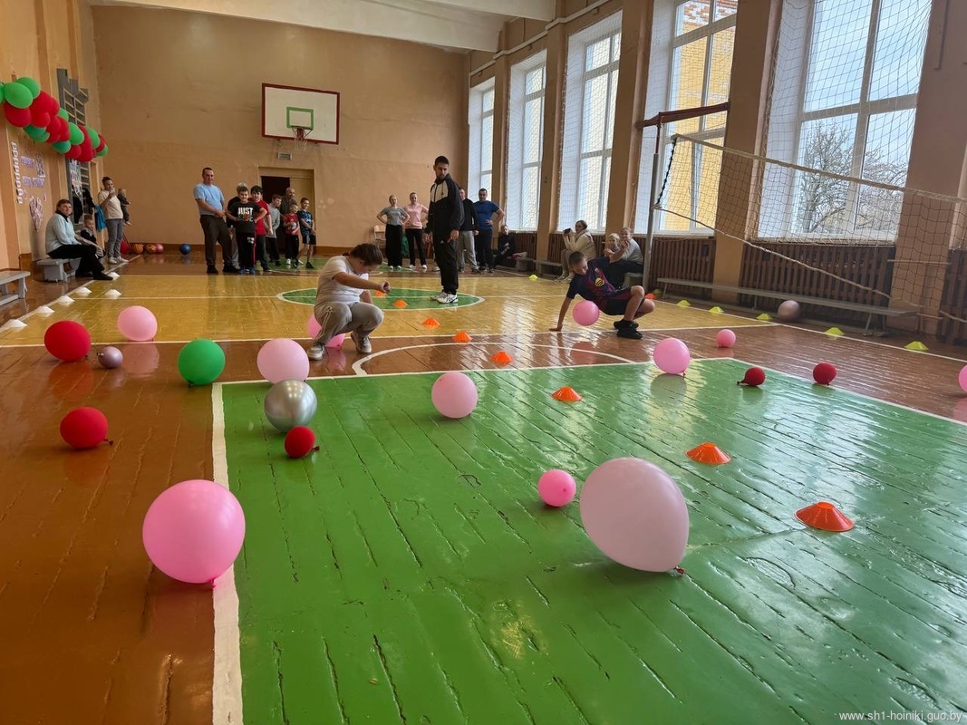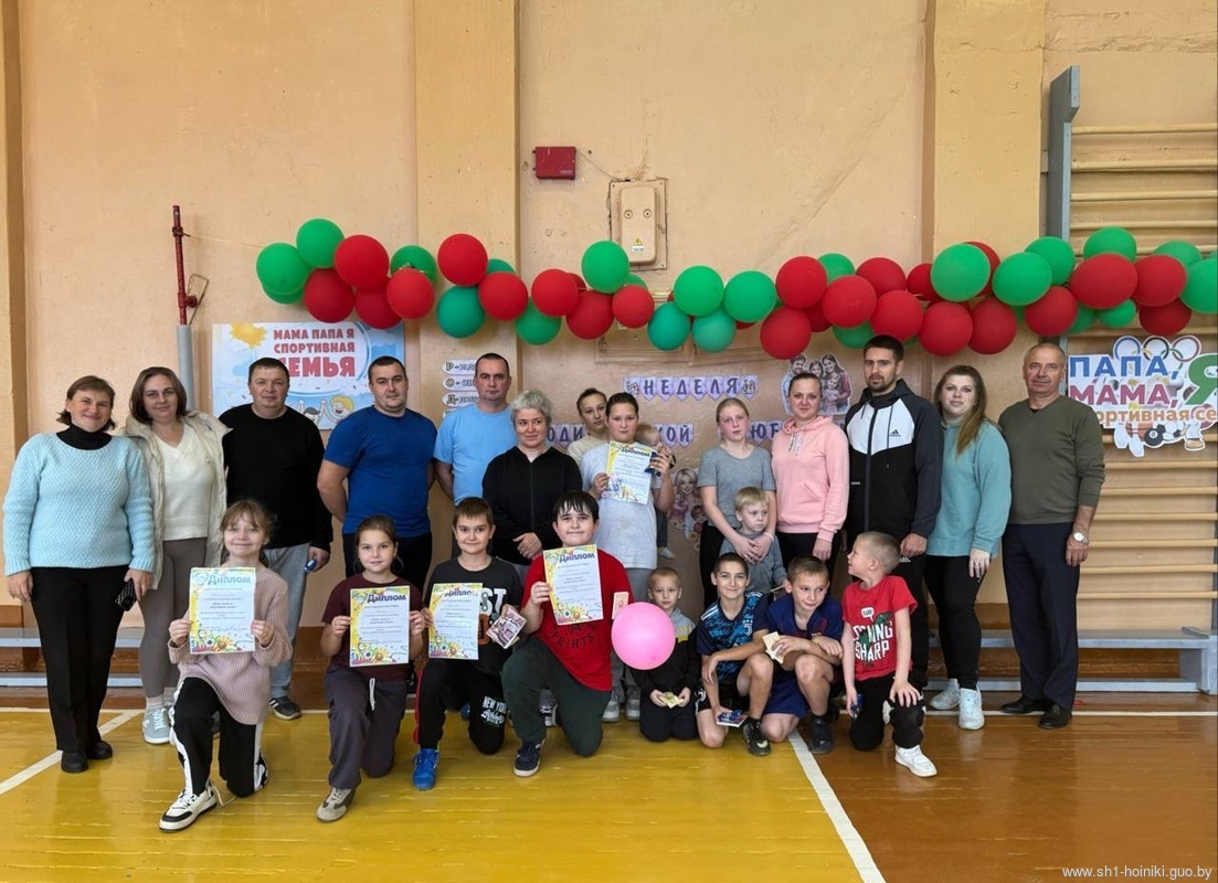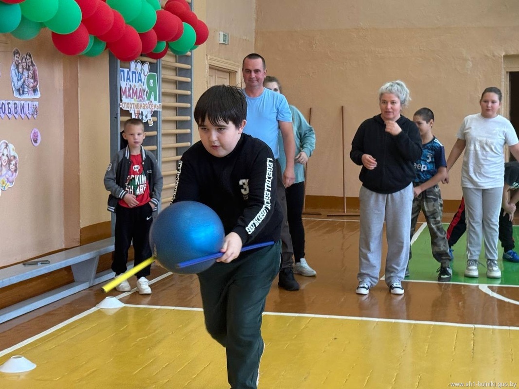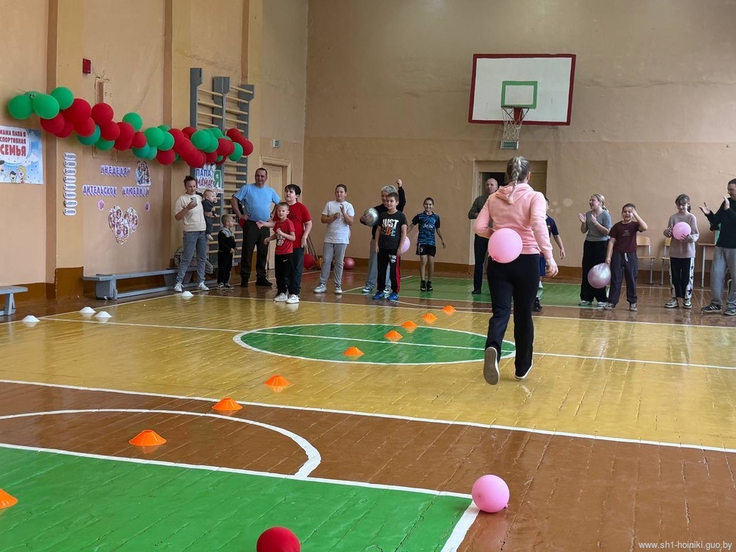 ФОТОФАКТ. В спортивном зале средней школе №1 г. Хойники состоялся спортивный праздник «Мама, папа, я – спортивная семья». На старт вышли семейные команды 5 классов.