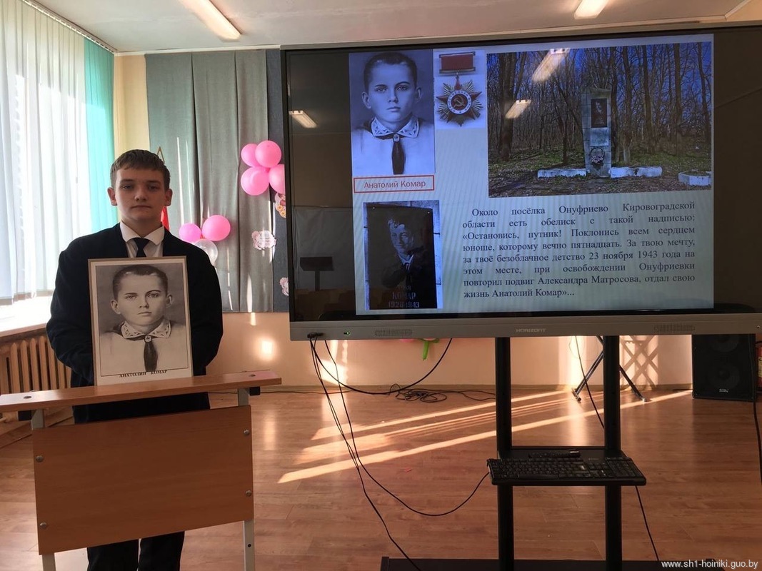 В рамках проекта «Урок в музее» на базе государственного учреждения культуры «Хойникский районный краеведческий музей»  с учащимися ГУО «Средняя школа № 1 г. Хойники» прошёл урок Памяти  «Память жива, чтобы жить поколениям!». В ходе урока учащиеся узнали, как жил и боролся с немецкими оккупантами Хойникский район, об организации партизанского движения на территории района, о тех радостных мгновеньях, когда пришла долгожданная Победа.