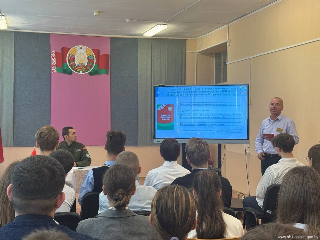 В ГУО «Средняя школа 1 г. Хойники» прошло мероприятие в рамках информационно-образовательного проекта «ШАГ» на тему «Быть достойным гражданином Республики Беларусь – значит чтить законы своего государства и брать на себя ответственность за будущую судьбу своей страны».