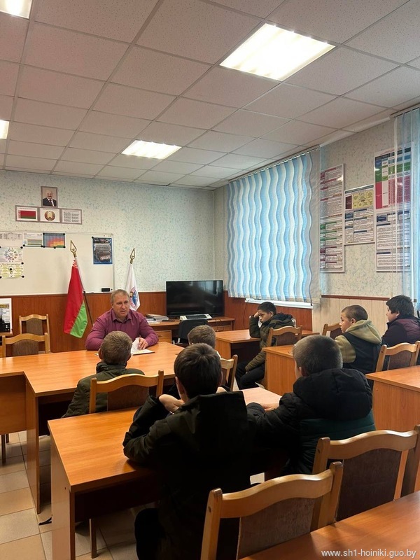 В ГУО «Средняя школа 1 г. Хойники» в рамках комплекса дополнительных мер по профилактике безнадзорности и правонарушений несовершеннолетних прошла встреча с и.о. начальника ОГАИ Хойникского РОВД Э. В. Тихоненко.