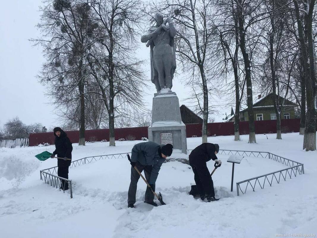 Несмотря на морозную погоду, ребята с горячими сердцами оперативно и дружно освободили от снежных заносов подходы к памятнику и площадку вокруг него.