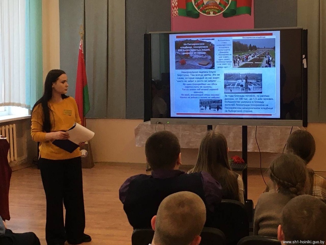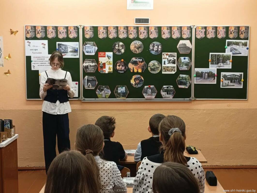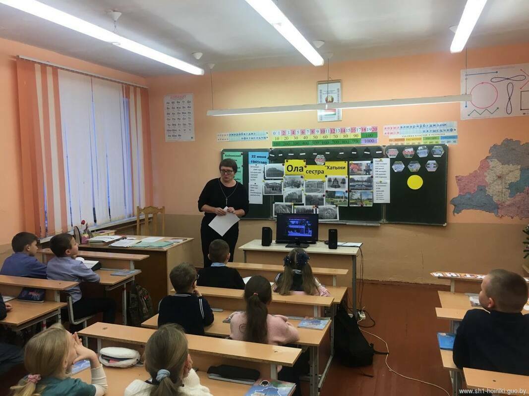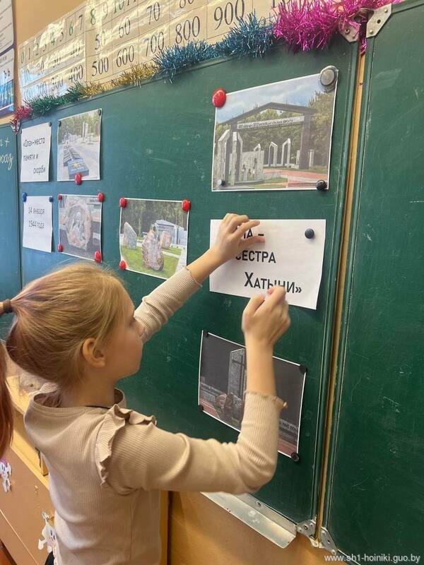 Акцентировали внимание учащихся на том, что в 1969 году в память обо всех погибших белорусах на месте бывшей деревни был открыт мемориальный комплекс «Хатынь» – трагическое напоминание об ужасах войны. Это одно из наиболее почитаемых мест в Беларуси.
