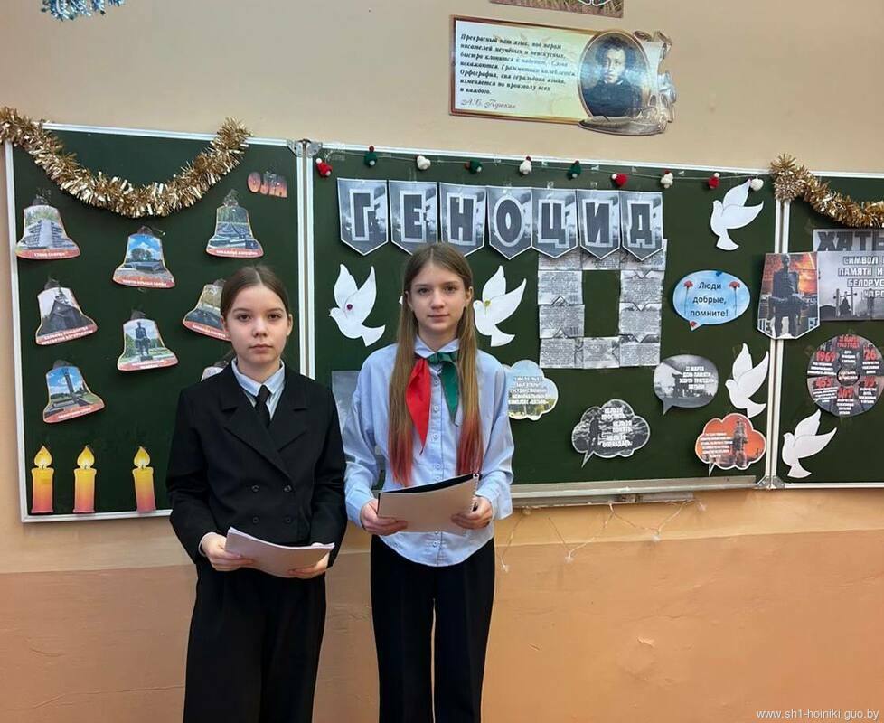 На уроке  с учащимися  вели разговор о символе геноцида, трагедии нашего народа во время Великой Отечественной войны – о Хатыни, историю которой забывать нельзя. Ребятам рассказали об ужасах политики геноцида немецко-фашистских захватчиков на территории Беларуси.