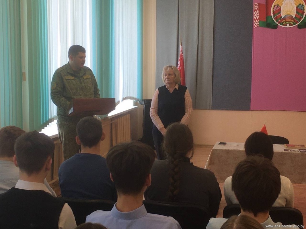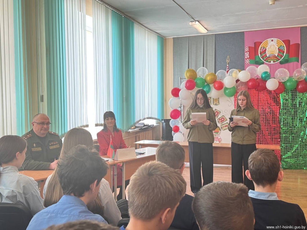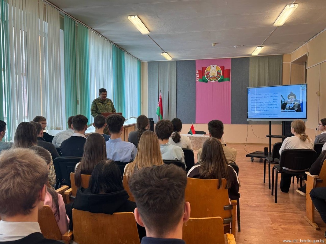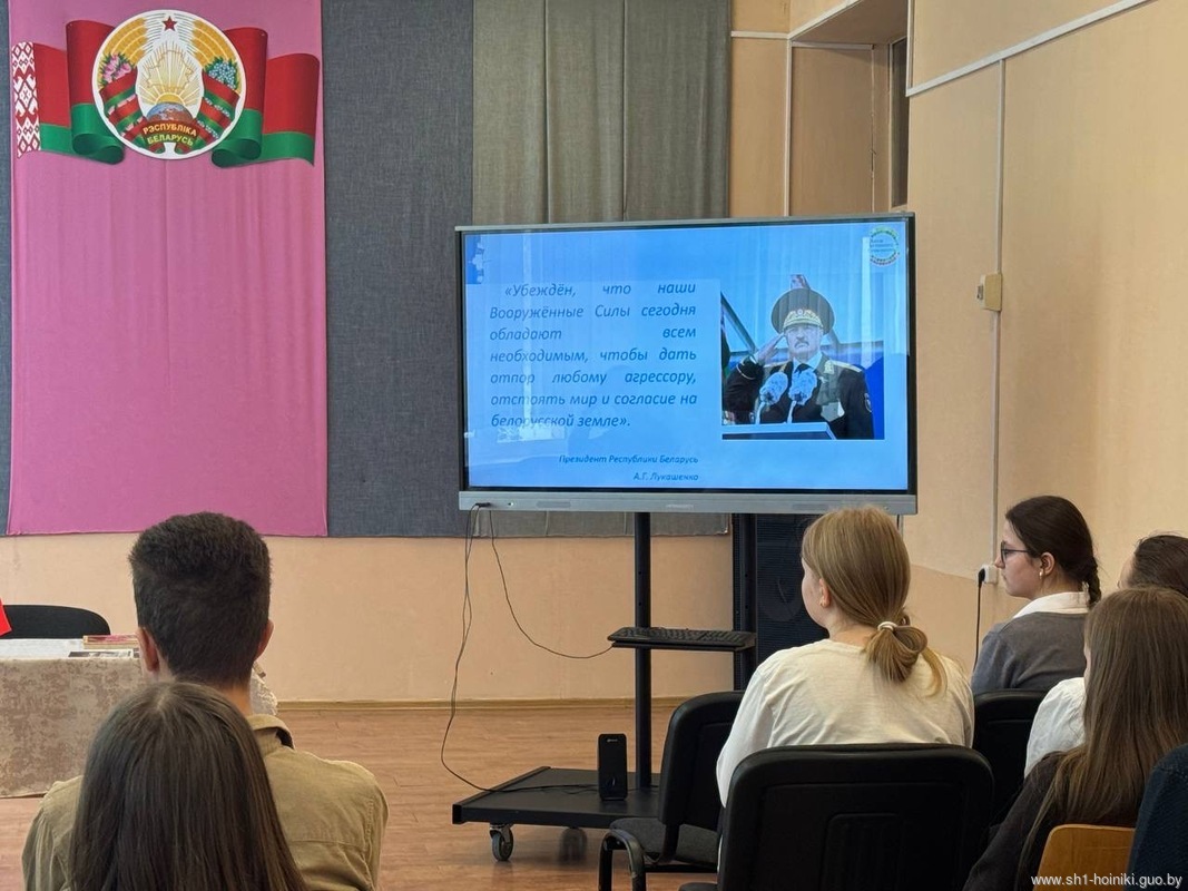 В средней школе №1 г. Хойники, прошел единый информационный час в рамках республиканского проекта «ШАГ» по теме «Быть достойным гражданином Республики Беларусь – значит быть готовым в любую минуту встать на защиту Родины».