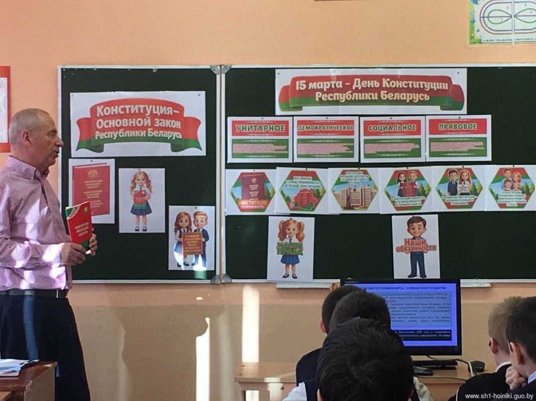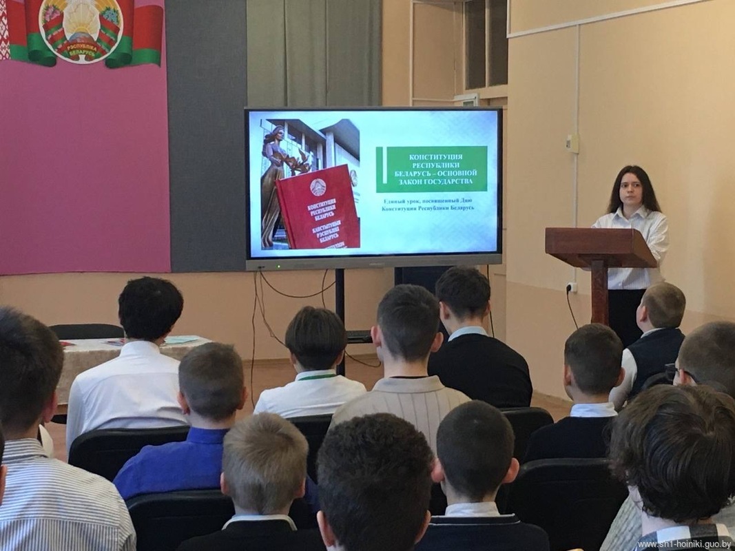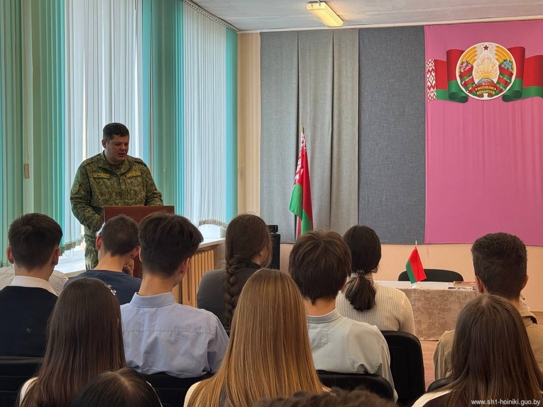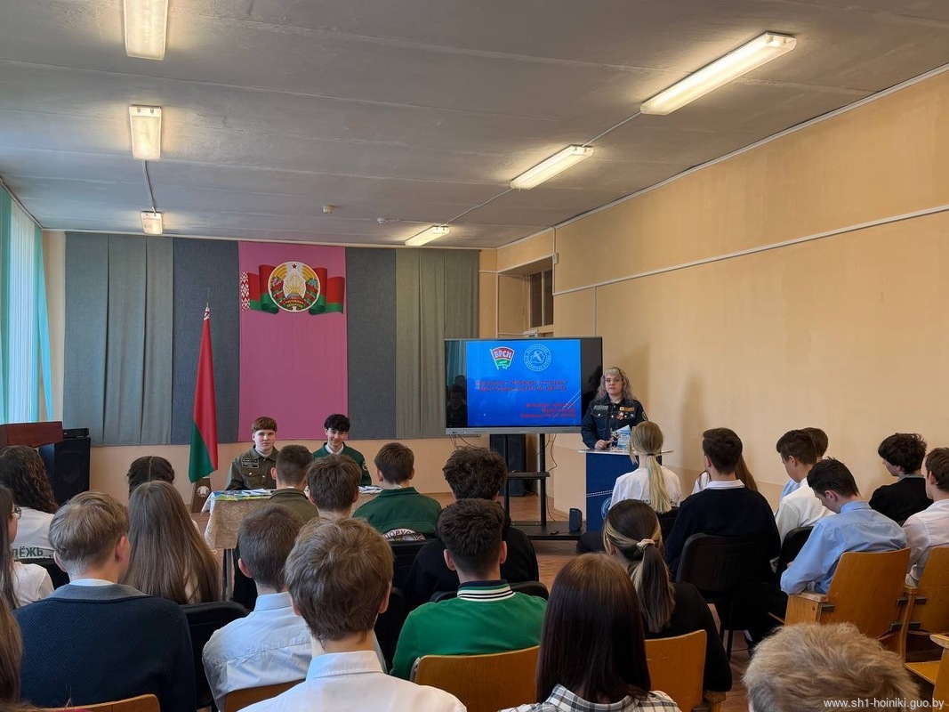 В средней школе №1 г. Хойники, прошел единый информационный час в рамках республиканского проекта «ШАГ» по теме «Быть достойным гражданином Республики Беларусь – значит быть готовым в любую минуту встать на защиту Родины».