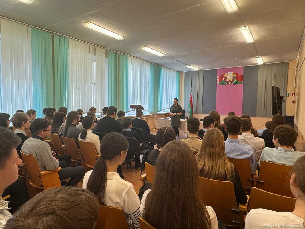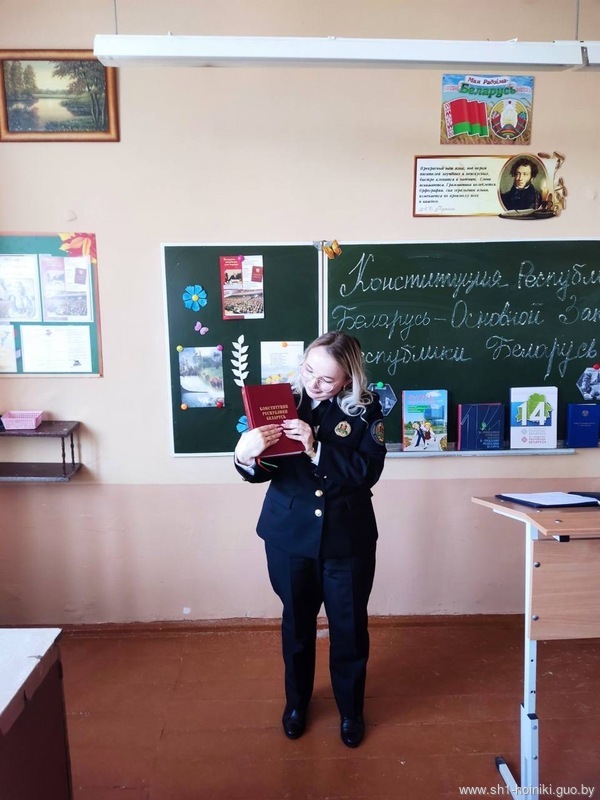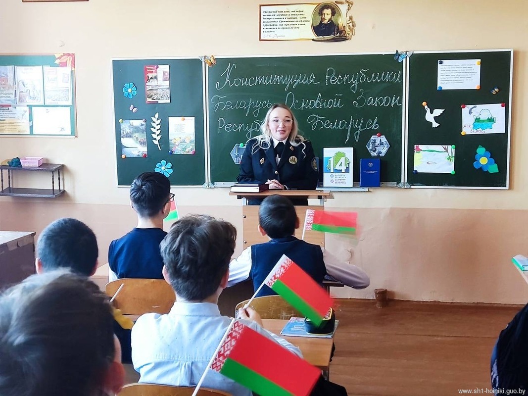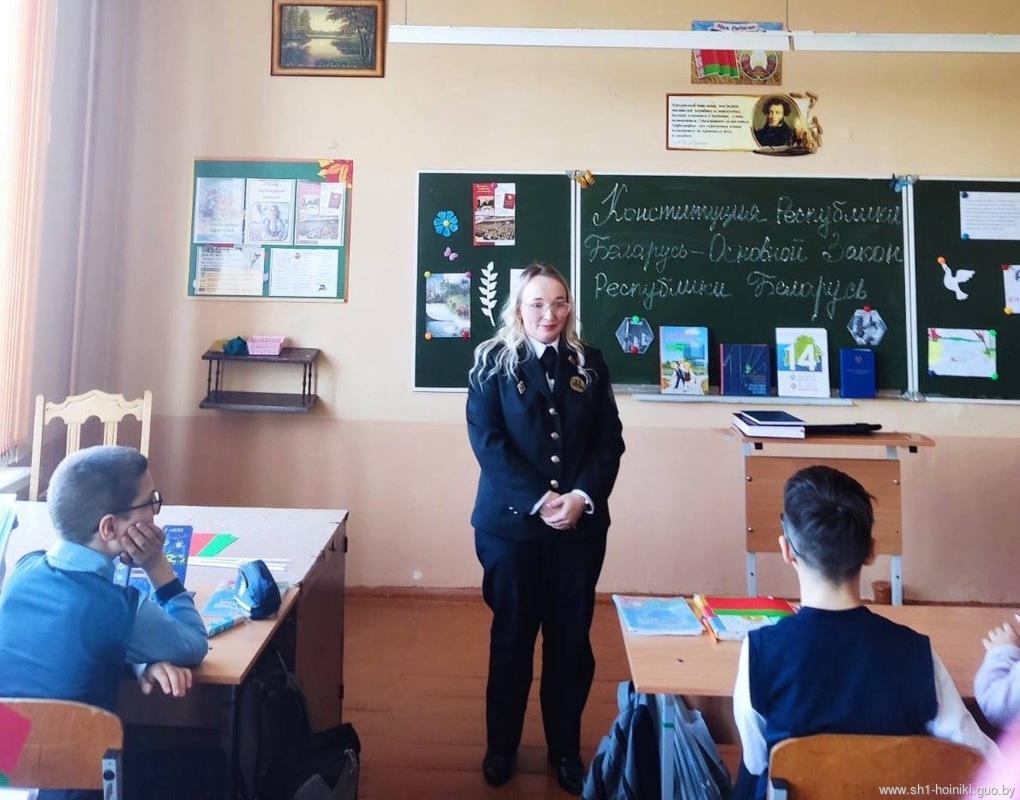 Гостем мероприятия стала судебный исполнитель отдела принудительного исполнения Хойникского района Виктория Игоревна Кривенчик, которая поделилась с учащимися важными аспектами основного закона страны.