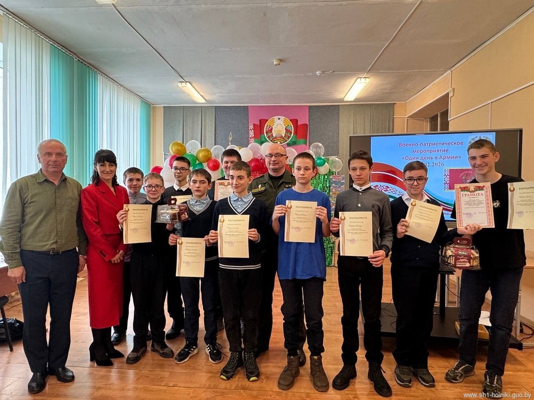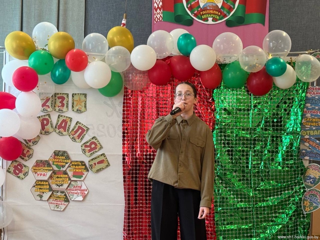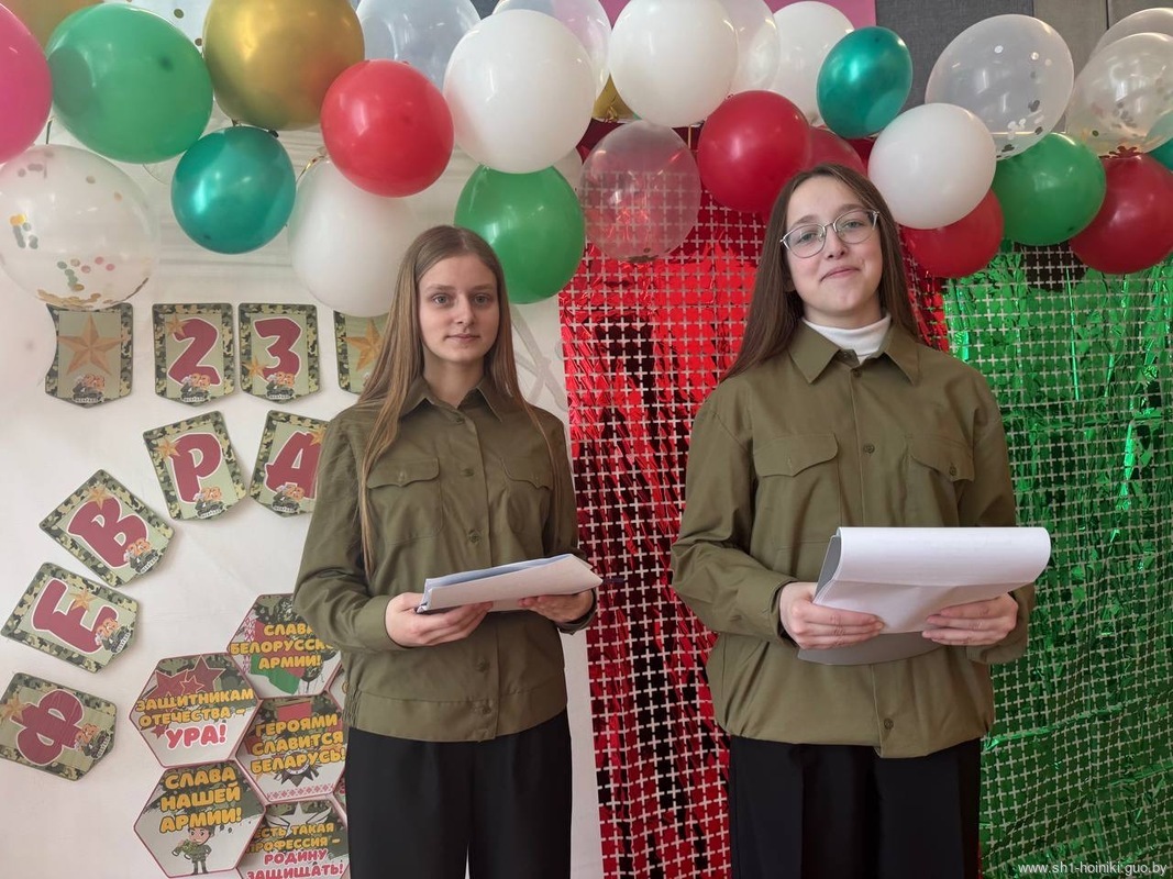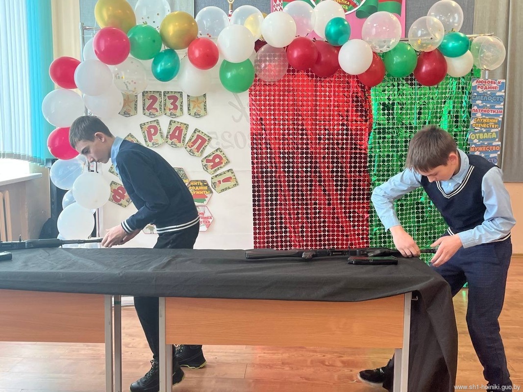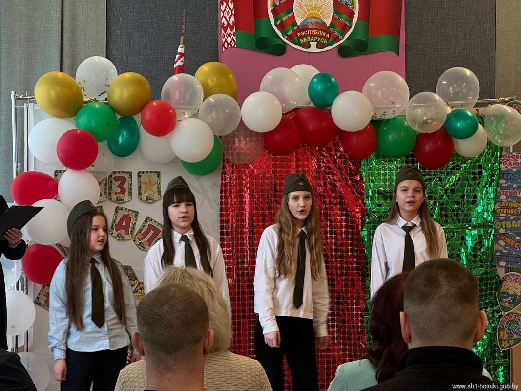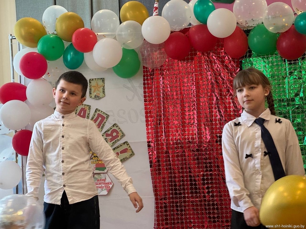 Учащиеся ГУО «Средняя школа 1 г. Хойники» подготовили музыкальные и танцевальные номера. Праздник 23февраля – хороший повод для воспитания у школьников чувства патриотизма, сопричастности лучшим традициям своей Родины, формирования у детей гордости за славных защитников Отечества. Это праздник всех людей, которые стоят на страже нашей Родины. Это праздник настоящих мужчин – смелых и отважных, ловких и надежных, а также праздник мальчиков, которые вырастут и станут защитниками Отечества.