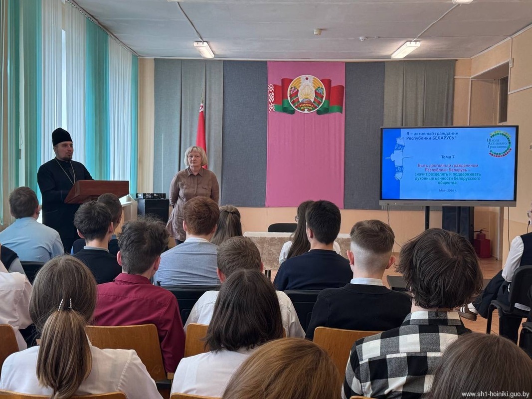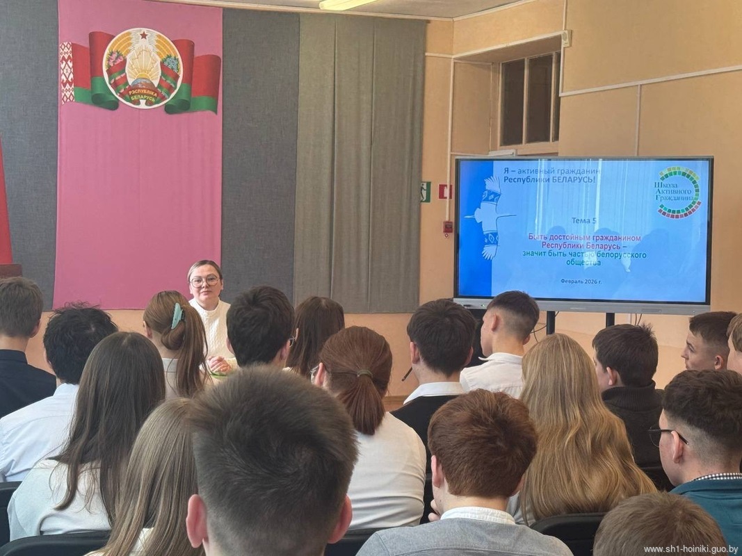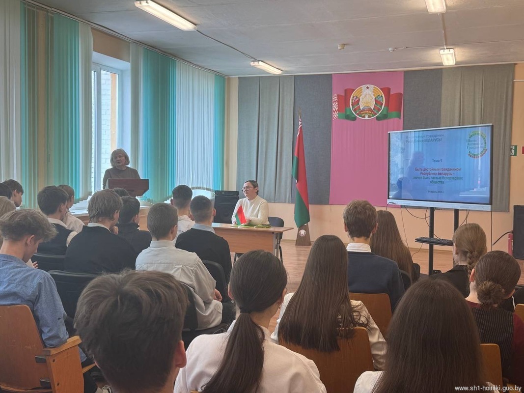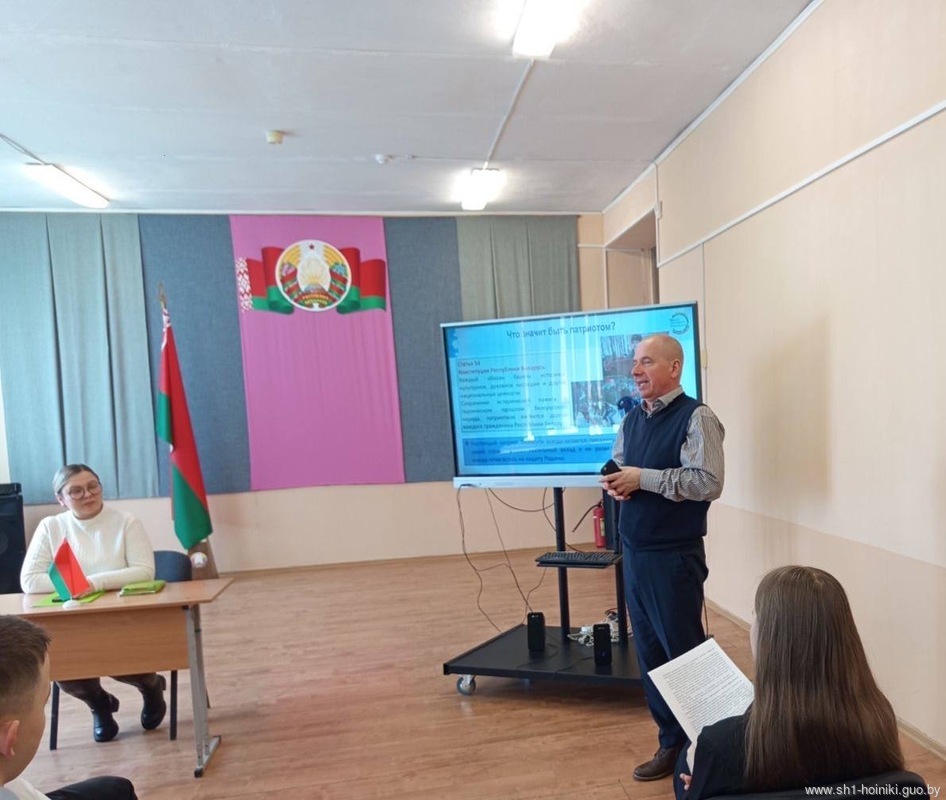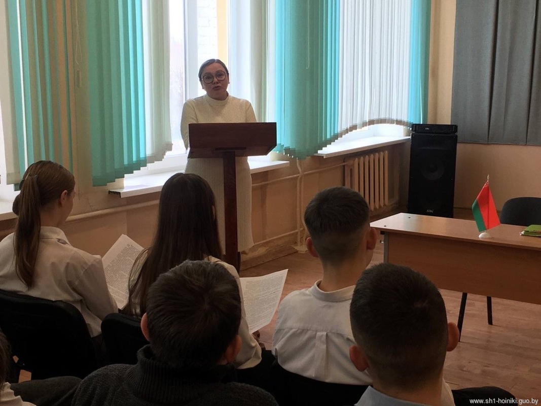 В рамках проекта "ШАГ" в средней школе 1 г. Хойники прошел информационный час на тему "Быть достойным гражданином Республики Беларусь - значит разделять и поддерживать духовные ценности белорусского общества".