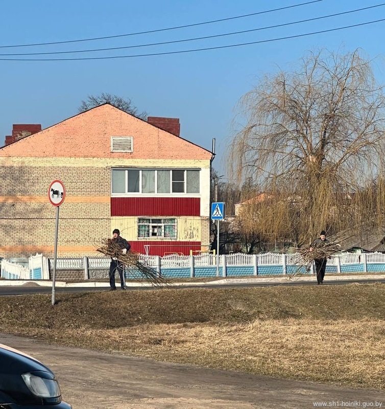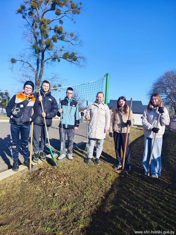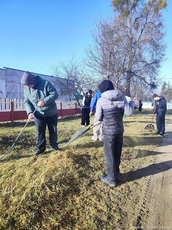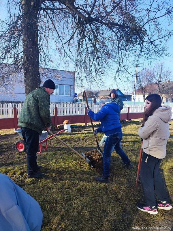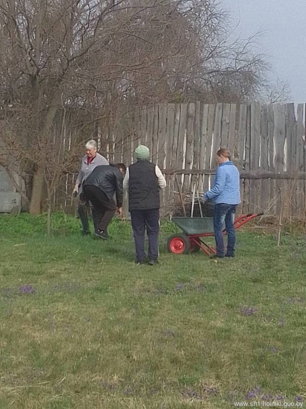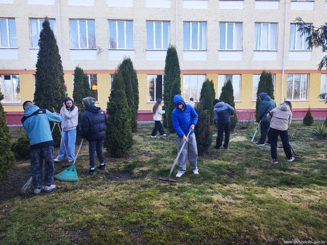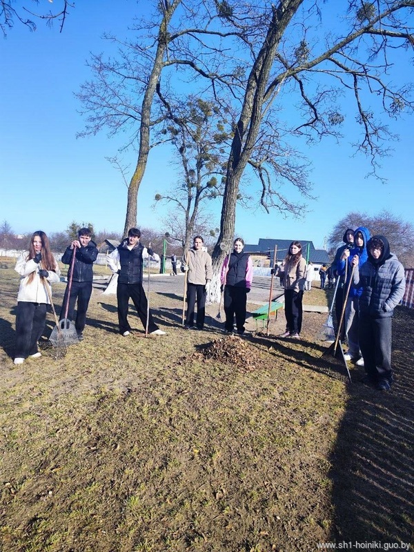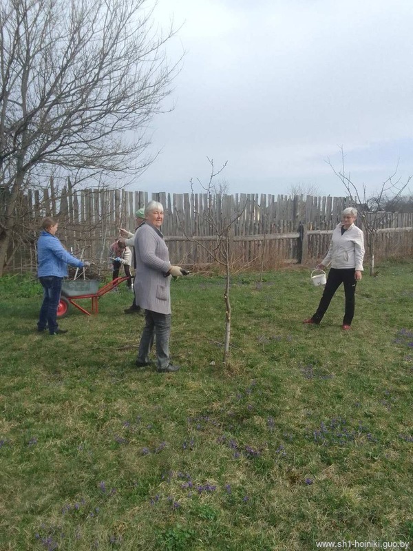 Коллектив ГУО «Средняя школа №1 г. Хойники» принимает активное участие в благоустройстве территории школы, а также ухаживает за школьным садом, в котором побелили деревья и обрезали сухие ветки