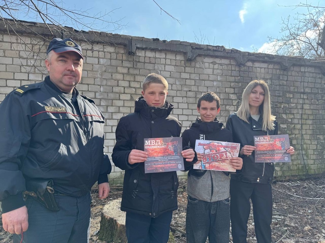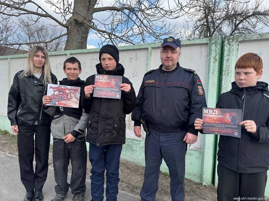 Учащиеся средней школы №1 города Хойники приняли участие в областной акции «Гомельщина без трафаретов». Вместе с инспектором ИДН Буйневичем В. В. они провели рейд по улицам города, чтобы выявить места, где могут быть нанесены несанкционированные надписи.