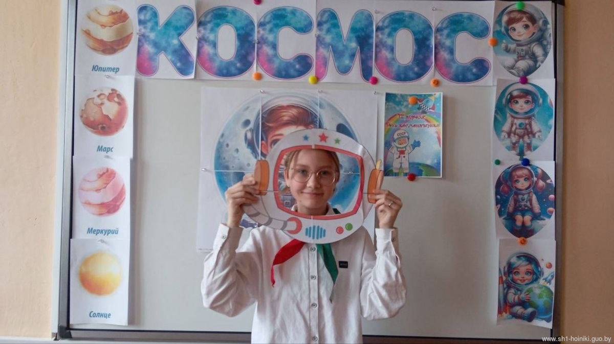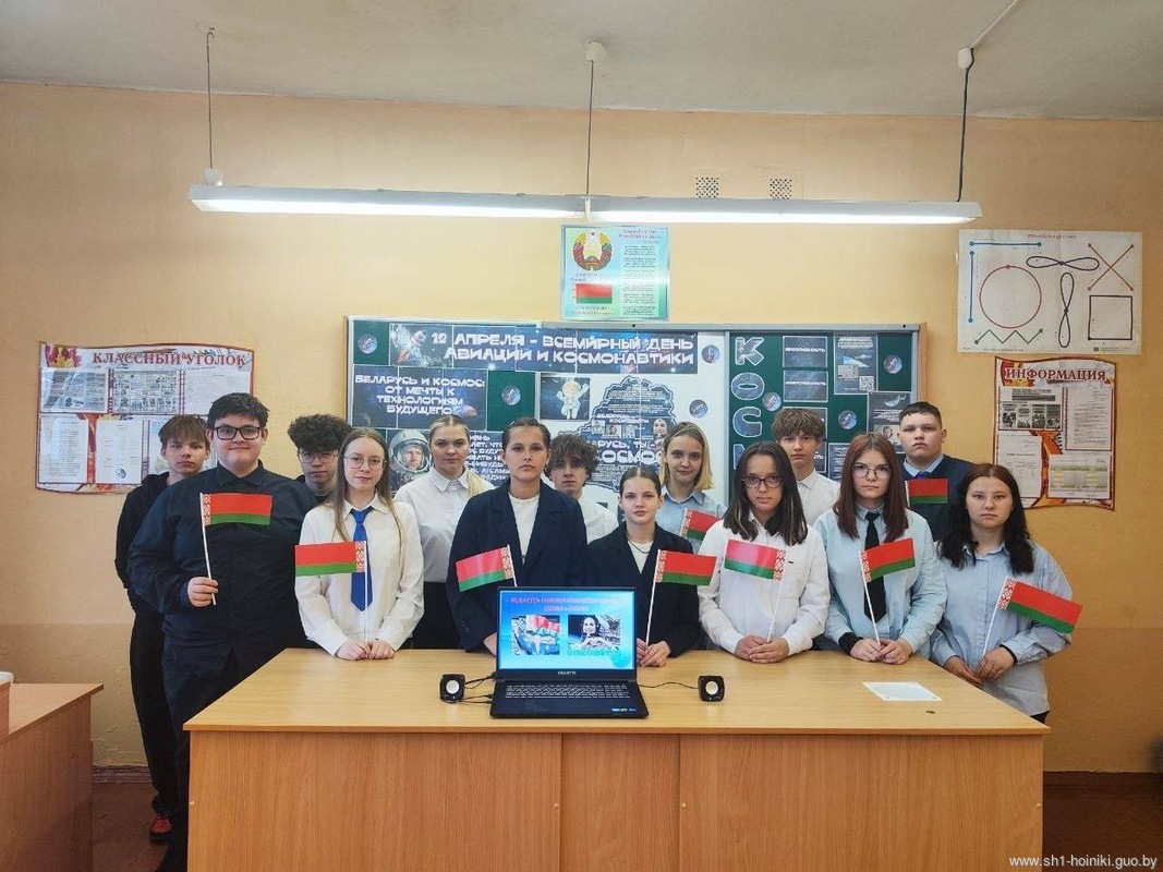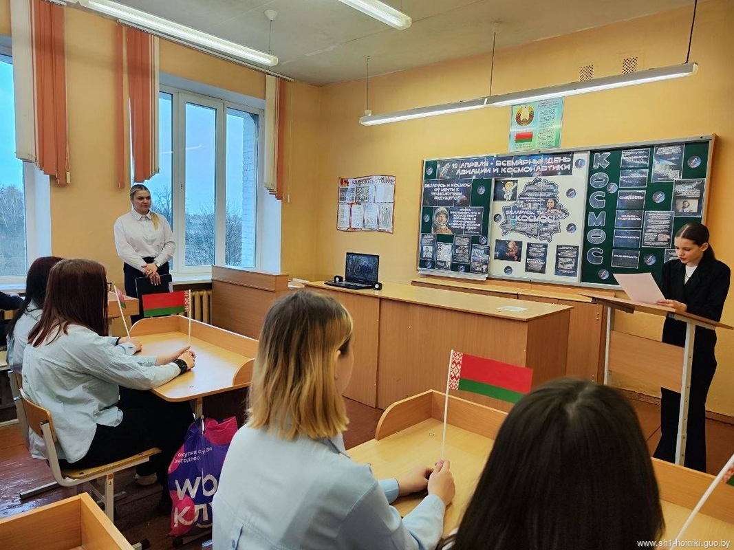 В ГУО «Средняя школа №1 г. Хойники» для учащихся 9 «Б»класса был проведен тематический урок, посвященный Всемирному Дню авиации и космонавтики. "Беларусь и космос: от мечты к технологиям будущего"